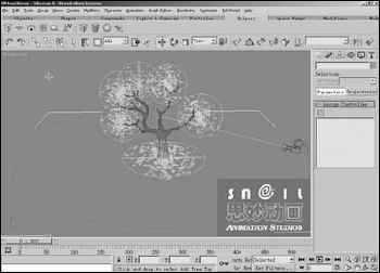 建立摄像机Cameras,我们选用Target类型。通过Motion面板的Assign Controller按钮为Cameras选择Path Constraint功能,选择Add Path,拾取Circle作为摄像机运动路径,在Look At Parameters卷栏下,选择Pick Target,拾取虚拟物体BoxGizmo01,使镜头对准并绑定BoxGizmo01。此时,摄像机已经能沿着Circle走动一圈。通过调整Circle与BoxGizmo01的位置,使梨花树在镜头内的运动正常(如图5)。