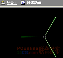 6.新建一个名为“射线动画”的影片剪辑元件。按快捷键Ctrl+L打开“库”面板,把“射线”元件拖拽到场景中(拖拽三次),并如图9所示放置。