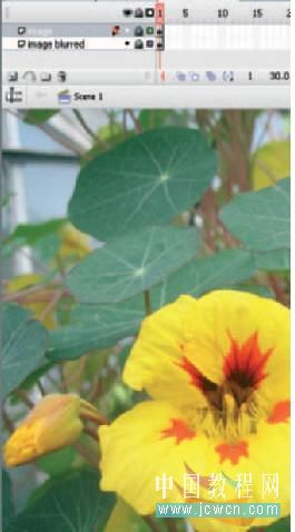 4.自此导入过程已完成,你的flash文档将在不同的层上包含两个图片。确认模糊图片在清晰的图片下面。