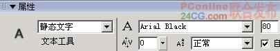 ,然后如图1所示设置“属性”面板。在“文字”元件的场景单击鼠标左键,输入一个大写字母V。如图2所示。