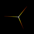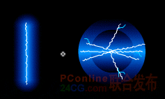 “线光源”的颜色组合是非常奥妙有趣的。图3中所示闪电就用了三种颜色,从左至右分别是白色、黄色和红色。虽然其中没有传统的蓝色,而且在大自然中也很难见到这样的景观,但别忘了:Flash是一种创造工具,每一个设计者都可以是奇迹的缔造者!
