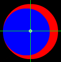 这就是彗星的头部,接着我们来加一个彗尾。因为考虑到光需要做环绕效果,所以这里的彗尾定义成四分之一圆弧。具体做法如下:在CometLight元件中新建图层CometTail。先画一个红色填充的圆,然后按Ctrl+D键复制该圆,并填充成蓝色。选择蓝色的圆,按快捷键Ctrl+T调出“变形”面板,设置圆的宽度为85%。现在将这个缩小后的蓝色圆移到红色圆上,如图14放置。在删除蓝色的圆后,就只剩下掏空的红色圆弧,继续删除不必要的部分,只留下左上角四分之一的圆弧,这就是我们需要的部分。给这段圆弧加上彗星头部同样的渐变色。