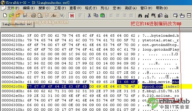现在我们换个思路。既然swf文件受到保护无法直接用Flash.exe打开,那么我们能不能对这个swf文件本身动手修改一下呢?这个思路不错,应该可行!