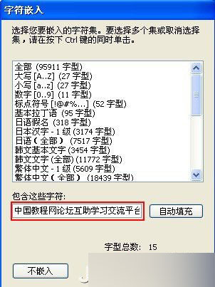 其中的字符嵌入很重要,点击打开“字符嵌入”对话框