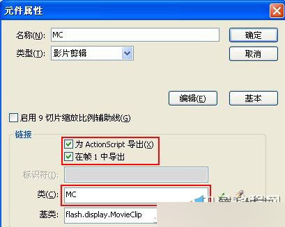 2、影片剪辑的属性按下图设置: