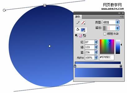 色柄二:红:13,绿:30,蓝:98 Alpha: 100% 调整渐变方向,如图所示。