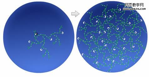 (8)在影片剪辑“球体”上点击生成藤蔓式图形,如图1-7所示。
