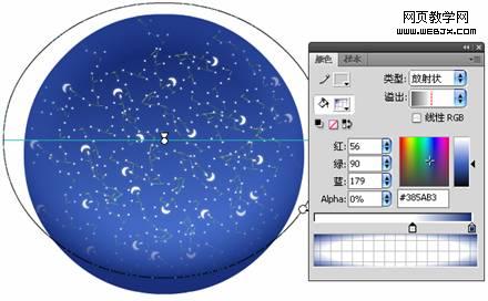 (13)新建一个图名为“光影”,绘制水晶球的高光和阴影,复制一份与“球体”一样的圆填充“放射状”渐变,色值为: