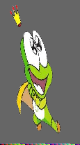 空中的设计是通过之前老师教过的漫天雪花有感而想的,可是我的短片里第一个空中场景却不是,根据歌词的内容要表达的意思,用之前的思想有点不合适,“借我一双翅膀,就能飞向太阳”就是这句,我总不能弄个满天的翅膀吧,这个肯定行不通,转头一想画的翅膀要和人物一起动,而且还要自身也要来回动太难了,所以我换了个方式,我从网上找了一个翅膀形状地气球,然后让它从一边飞过,正巧此时青蛙跳起咬住气球的线,这样才达到我要的效果。