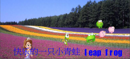 地上的设计不是很多,有在地上唱着歌、奔跑,玩耍、捉迷藏、滑滑梯等。这些设计不是很多难,用到借位达到想要的效果,通过透明度的不同达到效果,利用远近达到效果都是可以的,首先我们要从人的视觉下手,往往远处的物体总是比近的要小,所以通过这一点就可以让青蛙由小变大变可以了,这样达到的视觉效果就会很捧了。然后随着时间轴的推进,让它慢慢地变大这样从视觉上就达到了一种它是从远处走来的,如果是像青蛙与公主遇到时的那个场景来说,我是通过人物本身的动来表达他们是在平地上走着,公主动的时候就是让这个人物在前一帧的时候是往下,后一帧的时候是往上,这样重复地叠起来就像是人在走路一样。