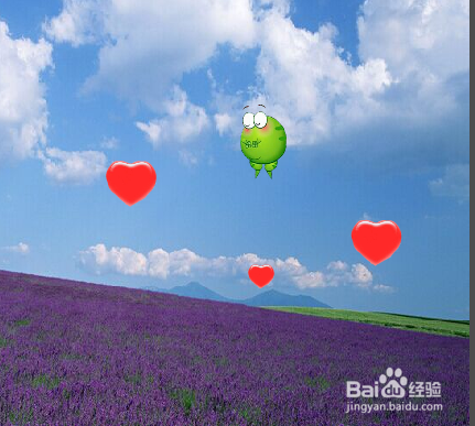 对了还有一个小细节就是上图中,小跳蛙从海洋游历到东方的时候,它想去东方那地面上去看看,可是走了那么久太累了,于是它是不断吸气让自己变大,然后就在屁股的地方放了一个图钉,不知道大家有没有注意到。还有就是在青蛙与公主遇到后,相拥一吻之后自己感觉飞上了天,我想表达它在空中在着爱心了,好像是踏在天梯上,这样一踩一上,然后遇墙撞下来时的那个样子,是我做了好久觉得很逼真的制作。但愿你们可以发现。