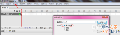第一步是点击flash中的插入,然后新建元件,元件为影片剪辑。