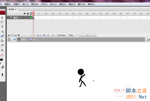 第二步就是在影片剪辑内部自己绘制一个小人或者其他动物之类的,看你喜好了,这里我要回答一下疑问,方便新手朋友,就是只有影片剪辑元件或者文本才可以进行滤镜处理,图片是不可以的,这是我画的小人。