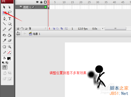 最后一步,对!又是在40帧处插入一个关键帧,为什么说又呢...咳咳,接下来我们再中插入补间动画,然后把40帧处的小人移到右边大概400码。OK!小人加影子就做好了,效果很酷炫呢!大家可以试试!