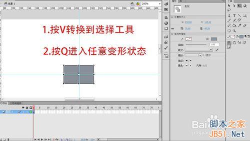 2、按V键选中选择工具,点选刚刚绘制的矩形,按Q键进入任意变形状态(注意物体中心点,这是关键)。