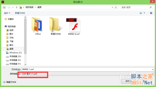 2、我们保存到桌面上,最好选择SWF影片类型,因为这种类型占用空间最小哦!