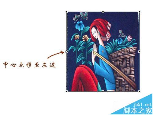 10、在第一帧拖入元件图1,Q键调出变形工具,将元件中心点移至左边。