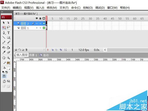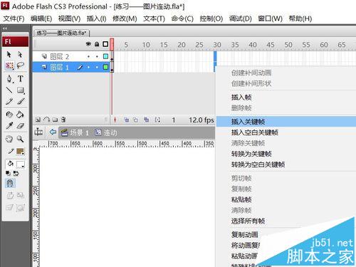 12、按住SHIFT键,选中图层1、2第30帧,插入关键帧。