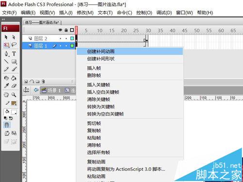 15、回到图层1第30帧,拖动图1元件右边框至左边,使其成为一线。