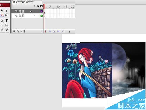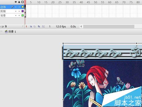 16、图层2帧1、30的元件换成图2。信息面板中帧1元件X方位改为-275(与图1左边对齐),拖动左边框至右边。同理将其余图层的元件分别换成元件图2、3|3、4|4、5|5、6,图层13的元件换成图1,形成图片连动的联接。并分别对单层的最后一帧和双数层的第一帧元件改动。