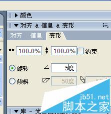 6、新建图形元件,起名“光芒“,选择矩形工具,无边框,填充选线形,增加一个色码,根据自己的爱好选择颜色。并把右色码得透明度改为20%左右,在舞台画一个矩形,改大小为130*3,把这个矩形拖到x、y为0,0的位置,选择变形,角度5度,复制并应用如图: