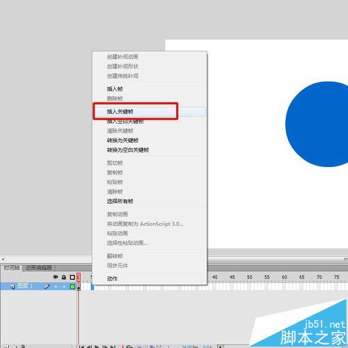 3、在时间轴上右键插入关键帧,距离的大小决定成品的闪光速度