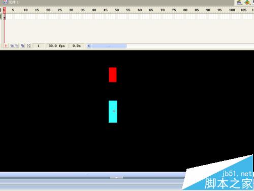 3、选择工具箱里矩形工具,设置笔触颜色为无,填充颜色为红色,在舞台中绘制一个长方形,接着重新设置填充颜色为#33FFFF,在红色长方形下面绘制一个稍大一些的长方形。