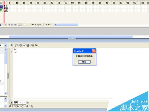 7、在时间轴上点击新建图层按钮新建一个图层2,选择图层2的前三帧并且转换成关键帧,选择图层2第一帧在动作面板输入i=1;n=1;
