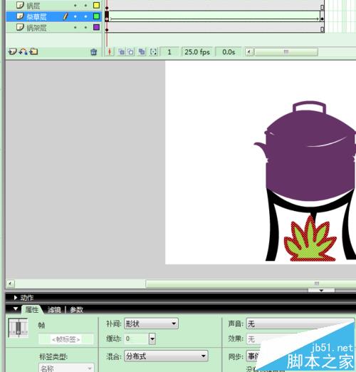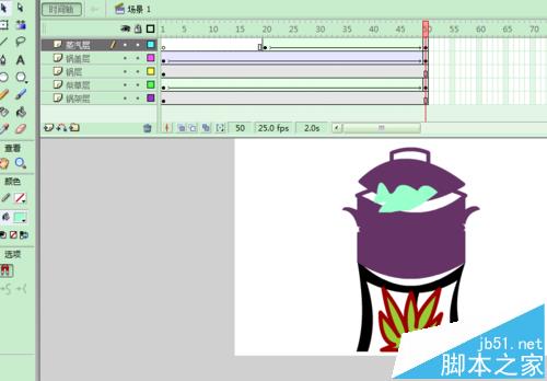 用FLASH软件模拟锅被烧开的动漫,用到补间动画等。