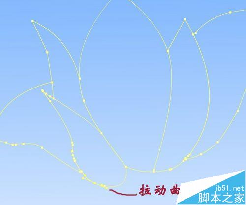 2、A键调出部分选取工具,点击线条,在出现的节点上拉动曲柄做细节调整,最终绘出花的外形。