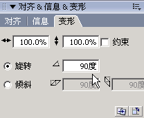 精确的变形要在变形面板中完成,可以用数字来确定,方法是,先选择一个对象,再使用“窗口”菜单中的“变形”面板(Ctrl+T),这时右边会出来一个变形面板: