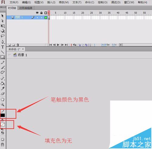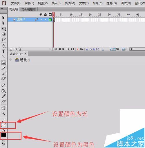 1、打开flash软件,进入flash的工作界面,如图所示: