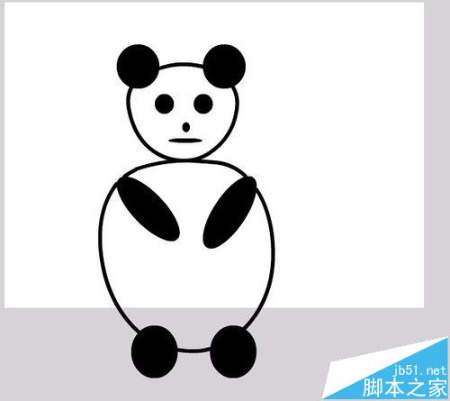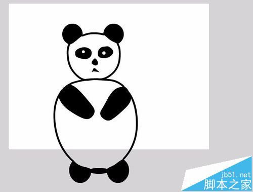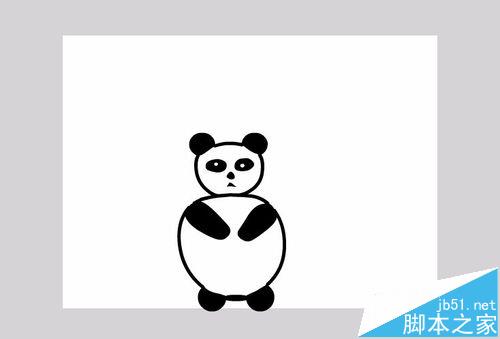 9、在熊猫的头部绘制耳朵,眼睛,鼻子,嘴巴,在身体上绘制胳膊和脚,绘制后如图所示: