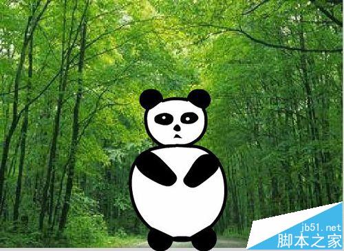 16、可以为我们的卡通熊猫添加一个背景图片,我们的制作就完成了,效果如图所示: