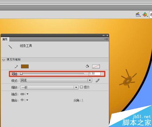 5、属性面板中,线条工具笔触改为0.5,拉出脐部褶皱。