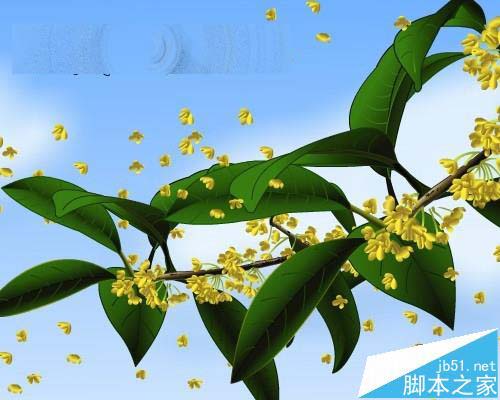 6、库中拖出前面制作的桂花元件,大量复制、旋转、拖动,最后组合成茂密的桂花。