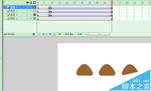 4、新建图层2、3、4,把元件“碗”分别拖到2、3、4图层中;