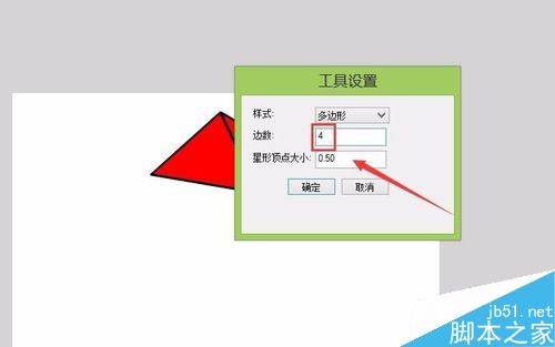 8、再次选择多角星形,在属性里点击选项,弹出工具设置对话框,调节边数为4,如图所示: