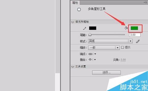 12、再次选择多角星形,在属性里设置填充色为绿色,如图所示: