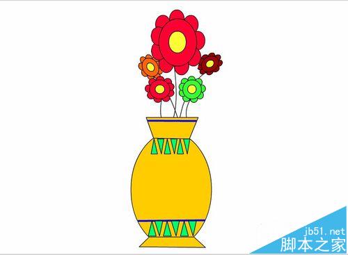 15、然后在制作一些花朵放到瓶子上,一个花瓶就制作完成了,如图所示: