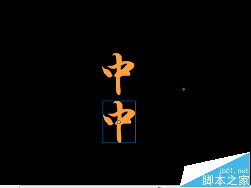 3、选择“中”字,执行ctrl+b将文字进行打散,将文字填充为黄色,并调整其位置。