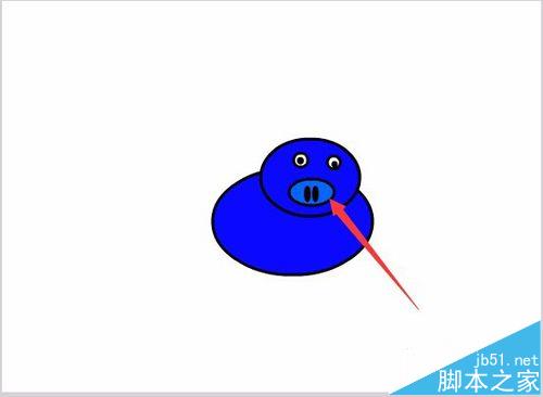 6、再在属性里调节填充颜色为浅蓝色,并在小猪的头部上绘制一个椭圆,作为小猪的鼻子,如图所示: