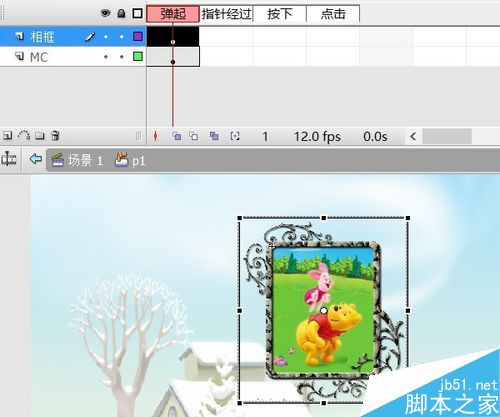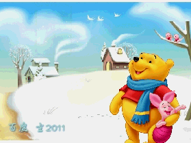 鼠标去探一探,一物渐渐浮出,原来是维尼的相框:小猪和维尼的友情图片交换出现。点进去,原来还有维尼与各个伙伴的图片。鼠标离开,相框又逐渐隐去。有意思吗,做起来也不难,过程主要准备两个MC:一个是若隐若现的MC;一个是点击可以看图片的MC。