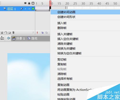 9、为帧1、帧10创建补间动画。完成该MC制作。