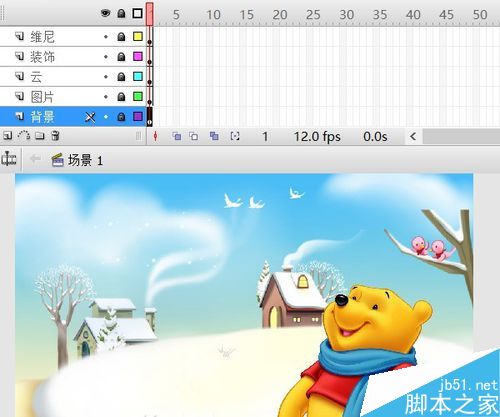 13、回到场景,分层放入第二大步制作的MC、维尼PNG图片以及闪烁的星等装饰。完成最后制作。