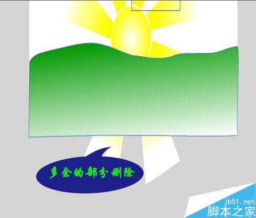 7、运用上述方法是当补几条光芒,然后将地面下面的光芒选中删除。再将光芒图形都放置到最底层。最日出的图形都完成了/如图。