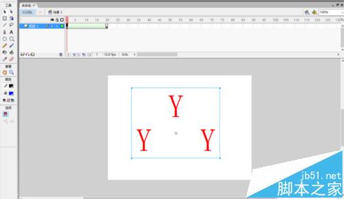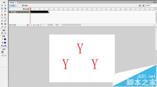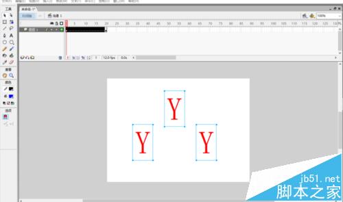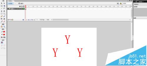 1、开启Flash软件,新建一个Flash文档,用文本工具打三个字母Y,再用任意变形工具将字母放大,按住Shift键可以等比例放大。