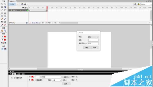 2、选择在20帧处插入关键帧,删除三个字母Y,鼠标左键长按矩形工具,再弹出的选项中选择多角星形工具,在多角星形工具选项中选择星星,边数选择5,再点击确定。