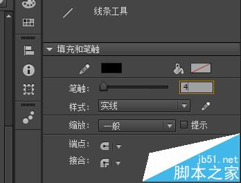 5、选择线条,在属性面板选择线条大小为4,颜色为黑色。