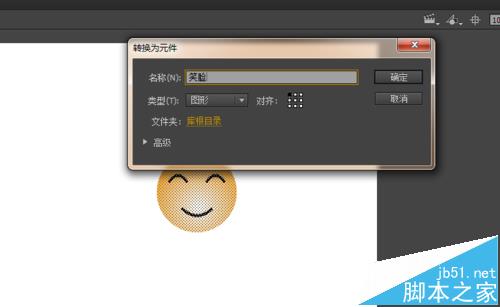 9、将整个图形选中,按F8键,转换成元件。名称:笑脸, 类型:图形,点确定。